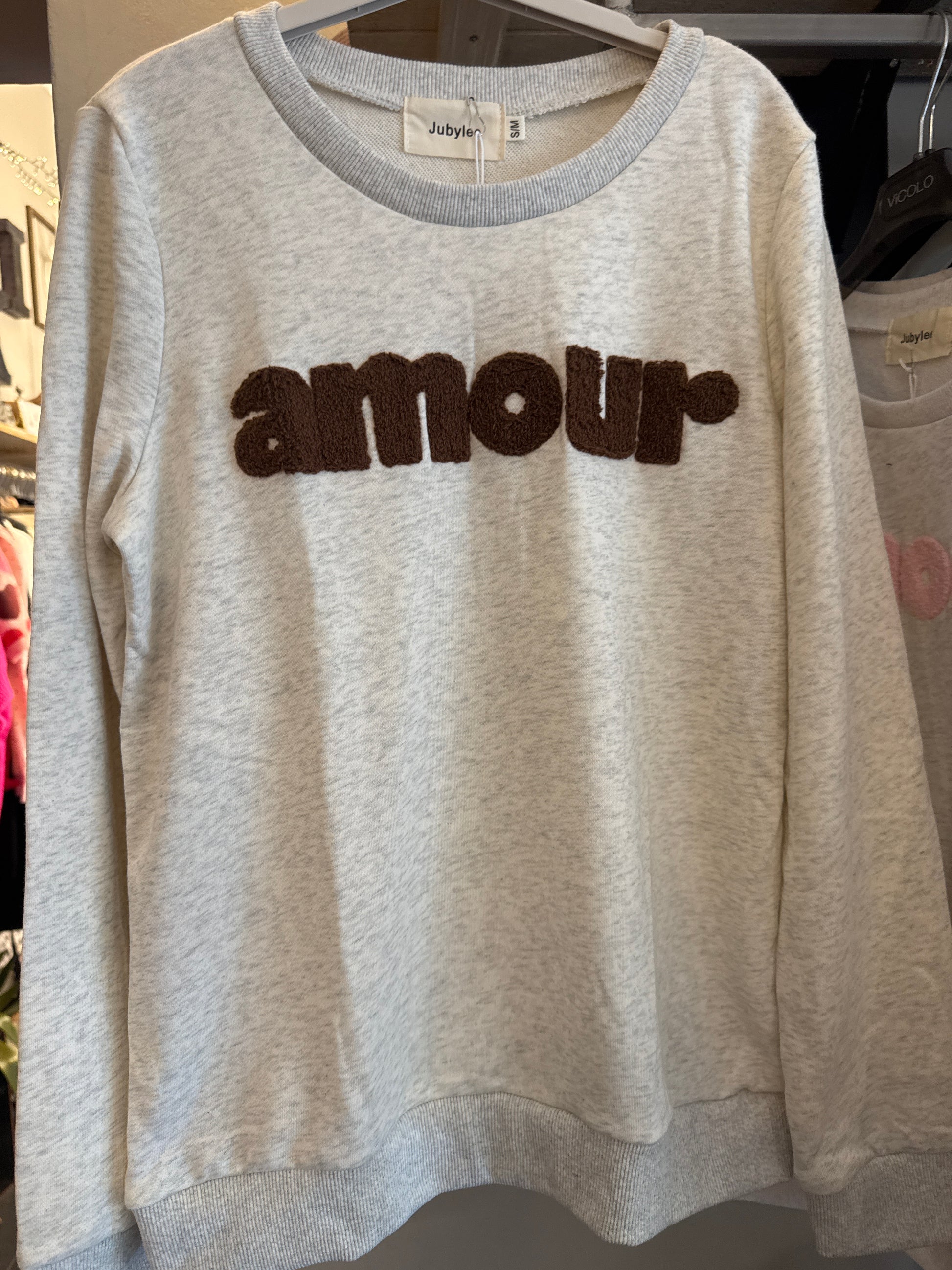 Felpa cotone grigio con applicazione orsetto sul davanti